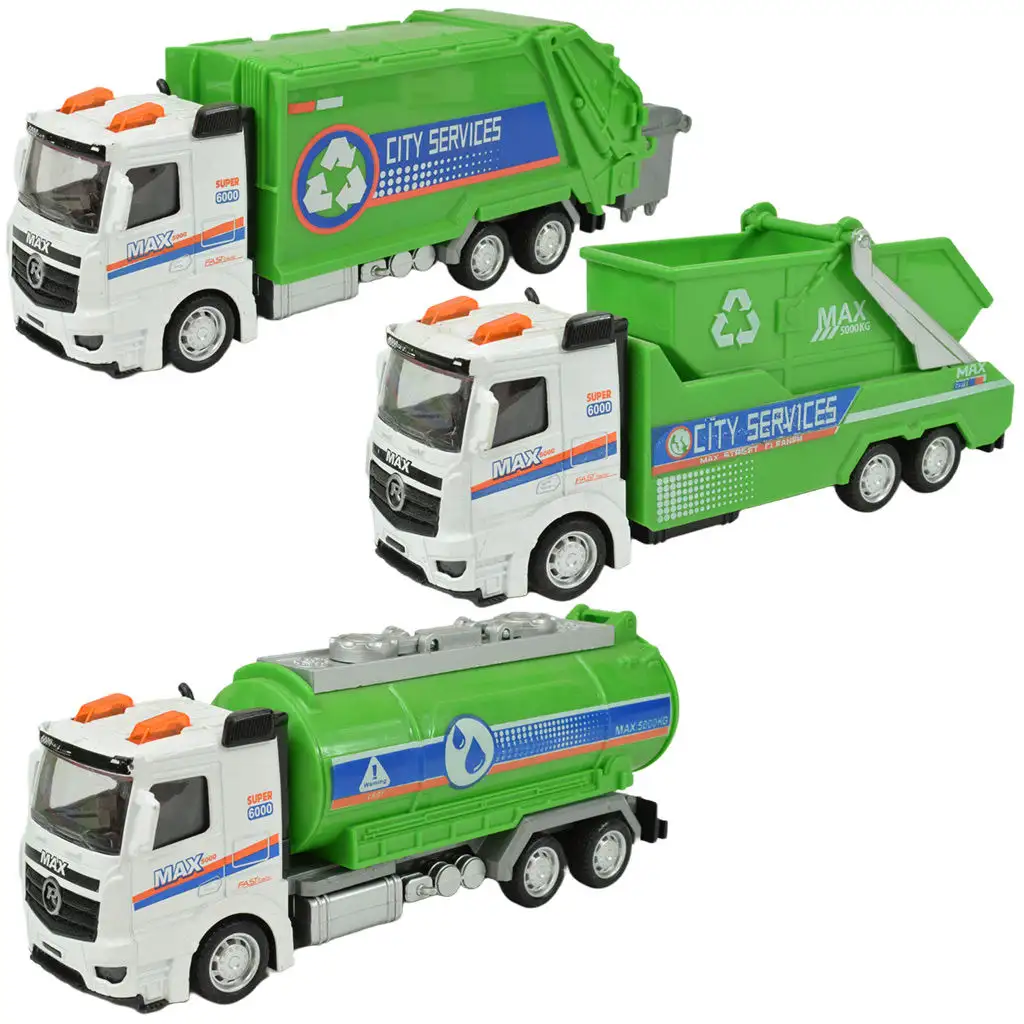 V této rozmanité nabídce jsou nákladní auta určená pro přepravu nebezpečných kapalin, jiná pro odvoz domácího odpadu a dokonce i pro manipulaci se stavebním odpadem. Každé vozidlo má propracované detaily, díky kterým jsou velmi realistická a věrně odrážejí nákladní auta, která lze najít ve skutečnosti. Navíc jsou auta ideální velikosti pro děti, takže s nimi mohou pohodlně a snadno hrát.