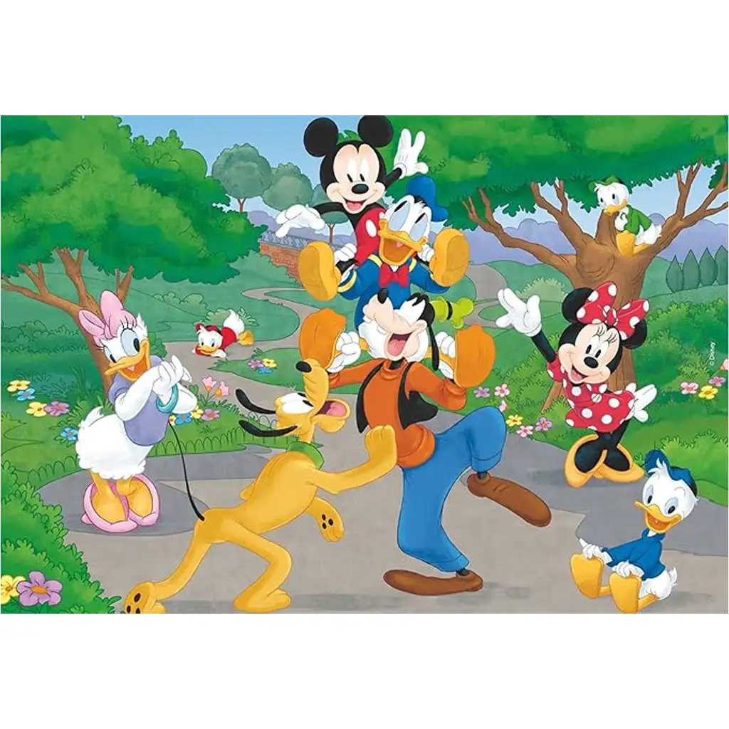 Objevte svět Mickeyho Mouse a jeho přátel s touto barevnou, oboustrannou maxi skládačkou, která obsahuje dva samostatné obrázky po 12 dílcích a také dva veselé omalovánky! Díky rozměrům 50 × 35 cm jsou puzzle nápadité a snadno ovladatelné i pro nejmenší ručičky. Na obrázcích jsou Mickey, Minnie, Donald, Daisy, Goofy a Pluto, které vidíte na slunečné procházce nebo při hravém dobrodružství – plné energie a dobré nálady.