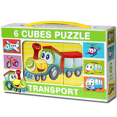 Mini kostky s veselými vozidly, 6 ks - D-toys