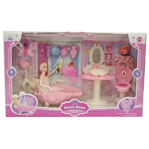 Můžete pořídit opravdu speciální set pro vaši dceru, která bude určitě nadšená, protože v něm najde panenku, kterou může oblékat, spolu s celou koupelnovou sadou. V koupelně je záchod, kohoutek a zrcadlo, fén a velká vana ve tvaru mušle, se kterými se vaše dítě může hodně vyhrát. V sadě jsou kromě toho i další doplňky a také elegantní koktejlové šaty, které si může panenka obléct po krášlení, módní blond panenka.