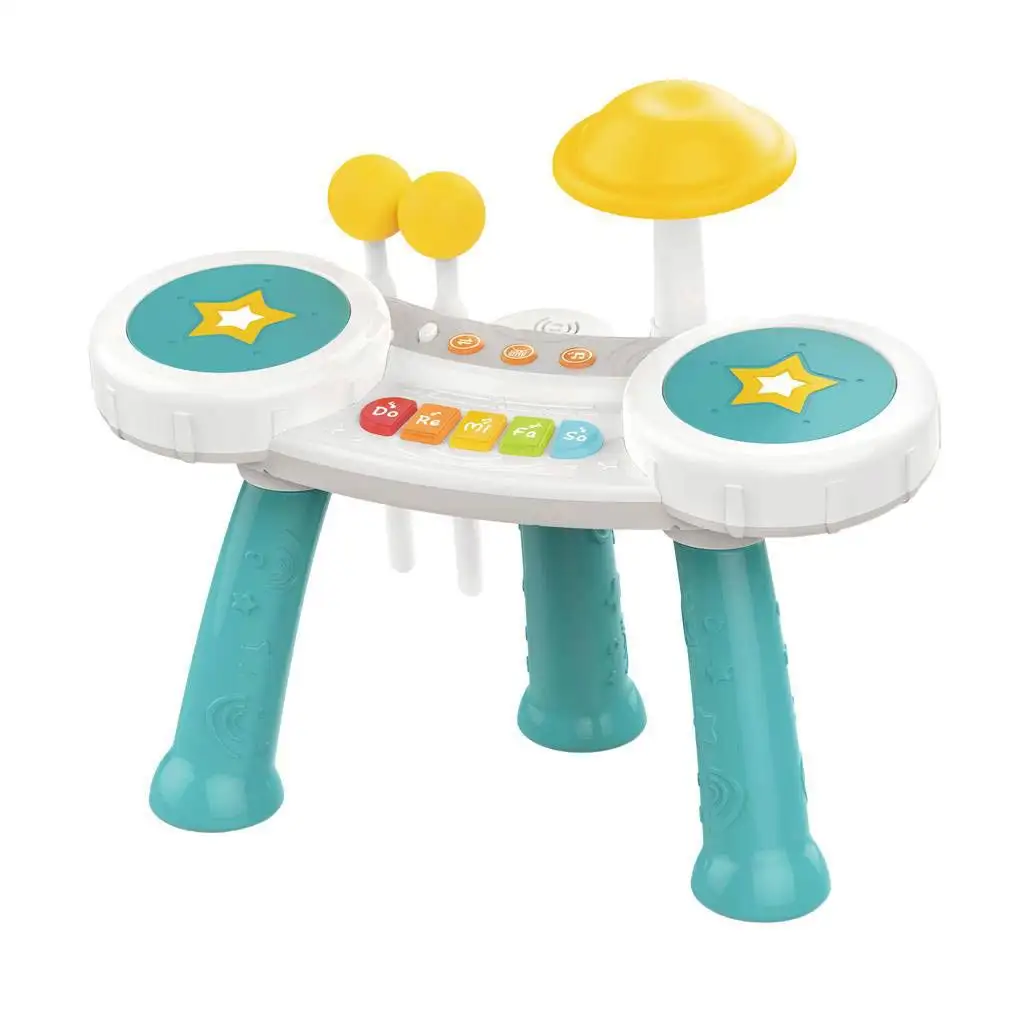 Objevte hudební kreativitu s tímto 2 v 1 hudebním nástrojem, který byl navržen pro milovníky rytmu a melodických melodií. Tento modrý nástroj vynikající kvality funguje jak jako bicí, tak jako klavír, umožňuje dětem vyjádřit se hudebně různými způsoby. Bicí souprava je perfektní volbou pro milovníky rytmu. K dispozici je několik různě velkých a zvukově odlišných bubnů, z nichž každý vydává jiný zvuk, když je udeřen.