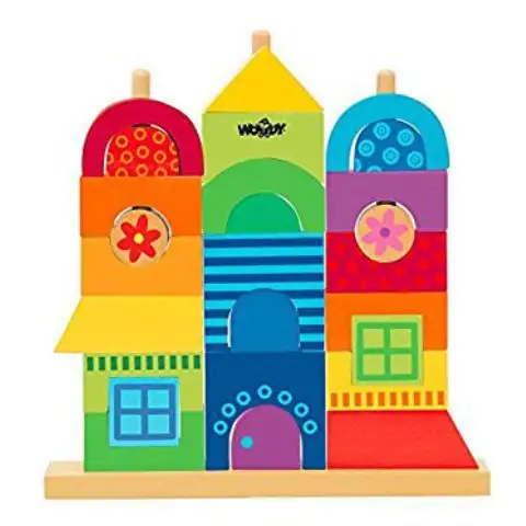 S touto hračkou můžete snadno postavit svůj první dům z dřevěných kostek, do kterého se musí nasadit stavební prvky na dřevěné tyče, které slouží jako základ hry. Děti tak mohou postavit dům od základů až po střechu, ve kterém je vše, co potřebují. Dveře, okna, kostky a oblíbené prvky jsou všechny k dispozici, takže váš dům může být opravdu rozmanitý. Skvělá hra pro rozvoj motorických dovedností!