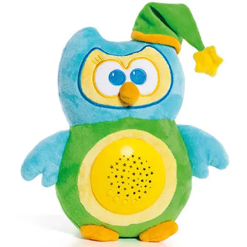Tato malá sova bude skvělým spánkovým partnerem pro děti, protože má hudbu a barevný projektor. Do sovy je vestavěný projektor, který promítá barevné hvězdy na strop, jejichž barva se mění, mění se jejich poloha a pomalu pulzují. Milá, měkká plyšová sova, jejíž vnější textilní část lze odstranit pro praní, protože hygiena je pro děti velmi důležitá! Uklidňující ukolébavky zaznívají z sovy, aby děti snadno usnuly nebo uklidnily jejich pláč. Elektronika má automatické vypnutí a časovač spánku. Hračka je také schopna vydávat zvuky srdečního tepu, aby napodobila zvuk v matčině děloze a tím uklidnila dítě a pomohla mu usnout.