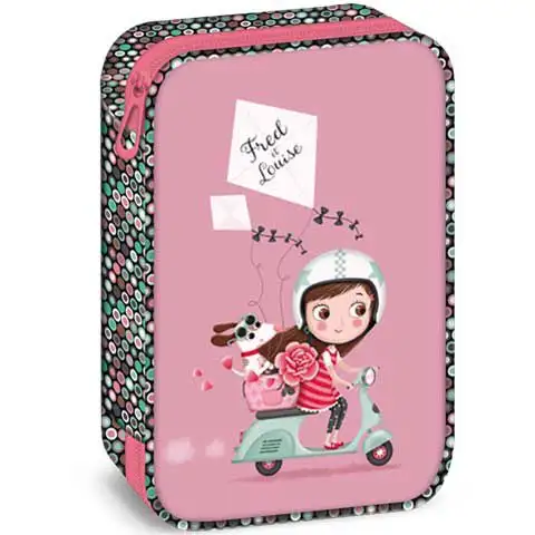 Vícepatrový penál Mon Amie přinese radost do každodenního života dětí. Růžová barva a živá, veselá grafika jsou vítěznou kombinací. Samotná základní barva je už sama o sobě atraktivní, a ilustrace roztomilé Louise a jejího pejska Freda zaručuje, že školní dny začnou s širokým úsměvem. Stylový a zároveň velmi praktický penál obsahuje 30 držáků na tužky, kde najdeš místo i pro gumu, ořezávátko, náhradní tuhy a dokonce i pravítko. Sestav své dceři školní výbavu s pomocí barevných produktů Mon Amie, které najdeš v našem e-shopu za skvělou cenu.