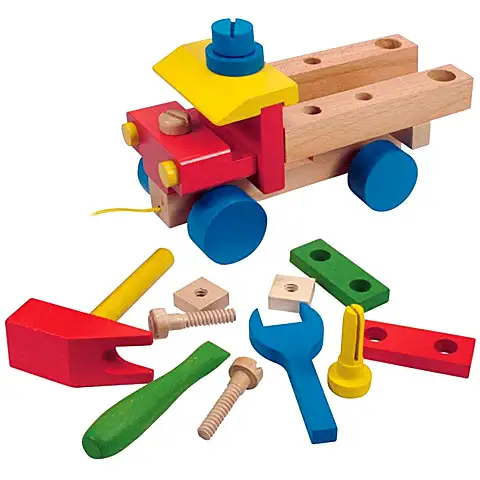 Chlapci si mohou podle libosti rozebrat tento velký nákladní vůz, jehož díly jsou vyrobeny výhradně z kvalitního dřeva. S nástroji a šrouby se mohou stát skutečnými automechaniky a během chvilky tento barevný malý vůz rozebrat a znovu sestavit. Je to hra, která skvěle rozvíjí zručnost a zároveň seznamuje děti s tvary, zatímco si příjemně hrají!