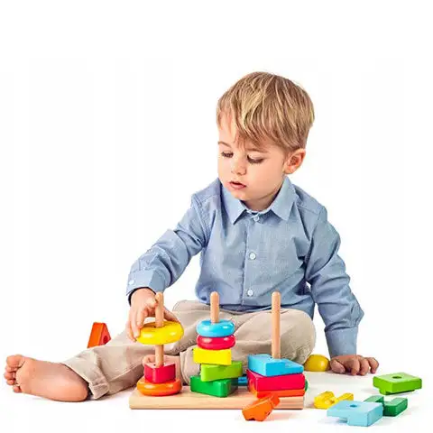 Montessori dřevěná věžová stavebnice je hra inspirovaná vzdělávací filozofií Montessori. Cílem hry je rozvíjet jemnou motoriku dětí, dovednosti řešení problémů a prostorovou orientaci. Součástí hry je sada dřevěných bloků, které děti musí umístit tak, aby postavily věž. Bloky jsou různých velikostí a tvarů, takže děti musí dávat pozor na umístění a váhu bloků, aby byla věž vyvážená.