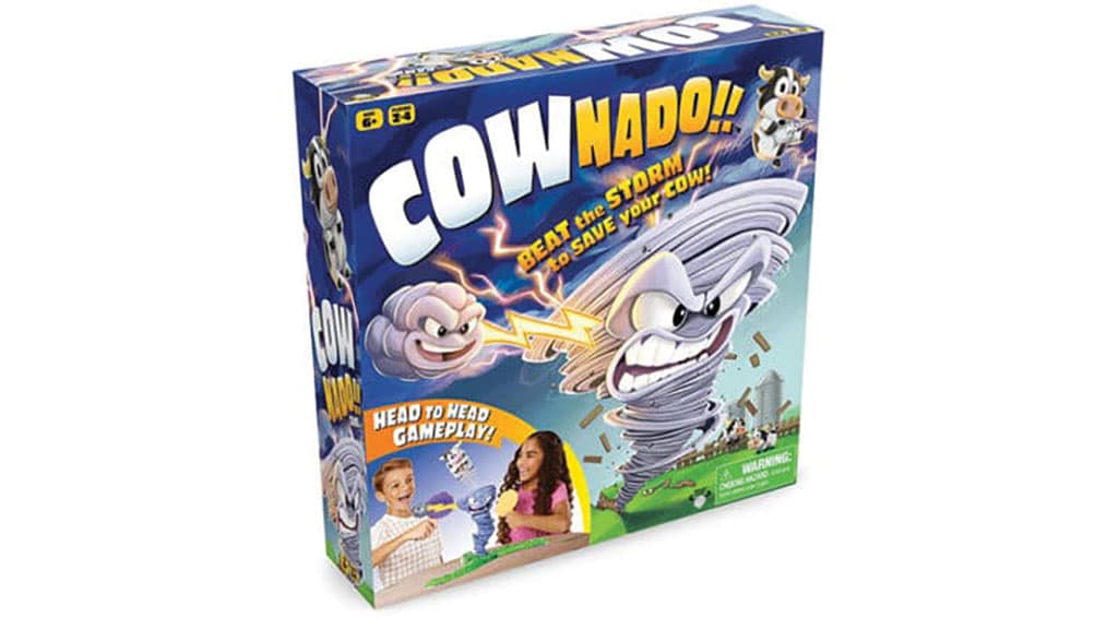 Moose Toys Cownado!! je rodinná hra, ve které musí děti vystřelit tři krávy z rotující bouře, aby vyhrály hru. Herní mechanismus připomíná hru s provazovým míčkem: hráči vloží krávy do válcovitého tornáda a pak se střídají v úderech do paže bouřkového mraku bleskovým kladívkem, aby se tornádo začalo otáčet. Vyhrává ten hráč, kterému se jako prvnímu podaří vystřelit tři krávy z tornáda. Tato hra není jen vzrušující, ale rozvíjí i zručnost a rychlé reakce, takže poskytuje skvělou zábavu pro celou rodinu. Moose Toys Cownado!! se svým barevným, veselým vzhledem a jednoduchými pravidly se snadno může stát oblíbenou hrou dětí.