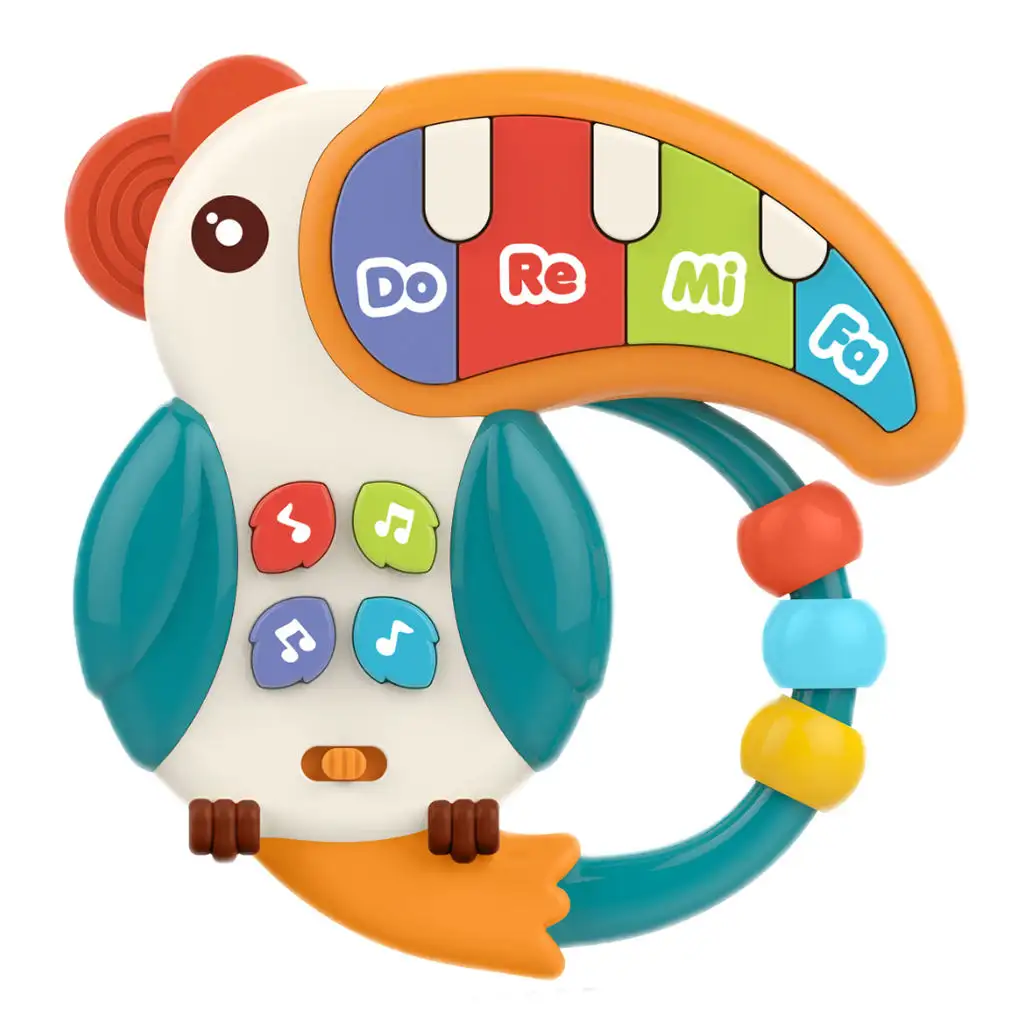 Design tukanova piana je velmi praktický a dětsky přívětivý. Díky kruhu mohou malí snadno vzít hračku do rukou a ovládat ji, takže si s ní mohou hrát samostatně, čímž rozvíjejí svou manuální zručnost a koordinační schopnosti.