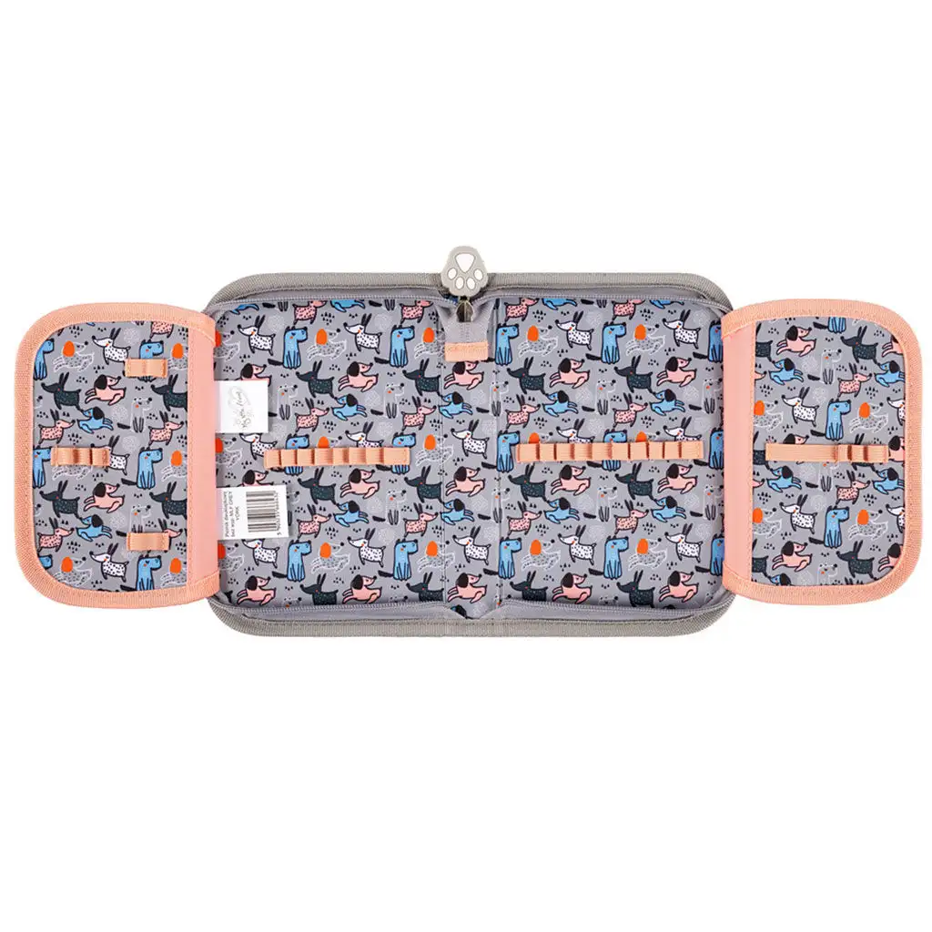 Tento penál není jen oku lahodící, ale také velmi praktický. Oboustranné provedení umožňuje snadný přístup k psacím potřebám. V prostorném vnitřku můžete uspořádat spoustu per, tužek a dalších psacích potřeb, zatímco roztomilý úsměv Yorkieho na vnější straně vždy vykouzlí úsměv na tváři vašeho dítěte.
