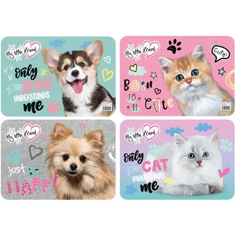 Produkty My Little Friend jsou zdobeny roztomilými pejsky a kočičkami, takže se jistě stanou oblíbenými mezi dětmi. Díky oboustrannému provedení si mohou děti obrázek podle nálady měnit. Podložku lze položit na psací stůl a používat ji jako ochrannou podložku, takže chráníte stůl před poškrábáním a poškozením. Navíc podložka poskytuje mnohem měkčí povrch než samotný stůl, což dělá psaní pohodlnějším, a děti se mohou učit ve společnosti psů nebo koček.