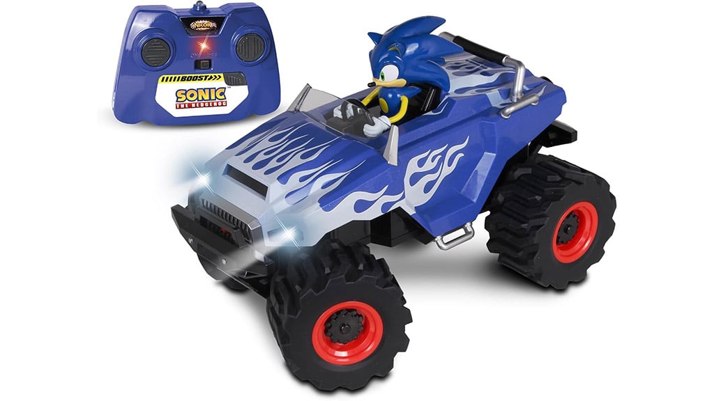 Nikdo nezná rychlost tak jako Sonic, ježek! Toto autíčko na dálkové ovládání posouvá zábavu na novou úroveň díky funkčním světlům, terénním pneumatikám a působivému plamenovému designu. Ať už s ním svištíš po zahradě, nebo kroužíš v obýváku, tento Monster Truck jede rychle, hladce a bez problémů. Děti navíc mohou sbírat i figurku Knucklese, aby byl zážitek ještě úplnější! Tato hračka je perfektní volbou pro každého fanouška Sonica, který miluje rychlost a vzrušující závody.