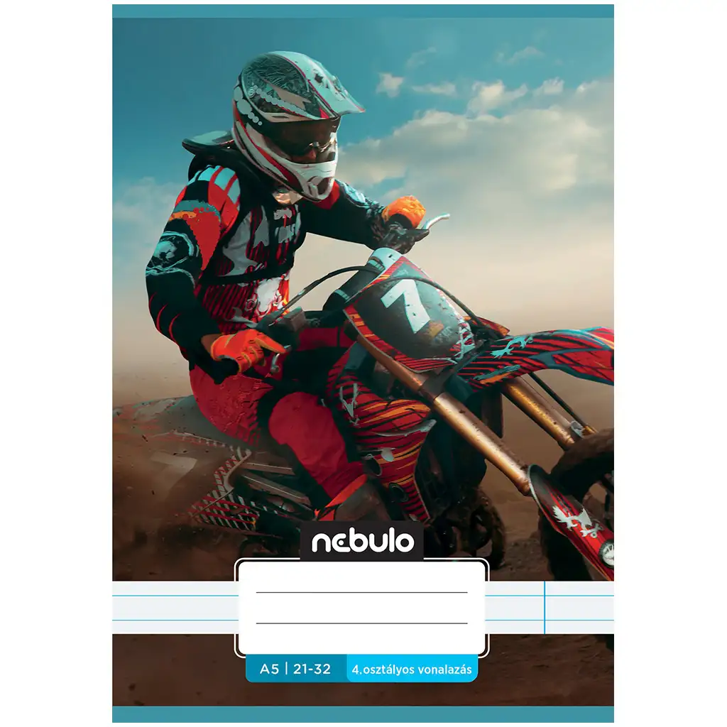 Nebulo: Sešit s linkami s motivem závodního motocyklu pro 4. třídu, sešit 21-32, formát A5, sešitý.