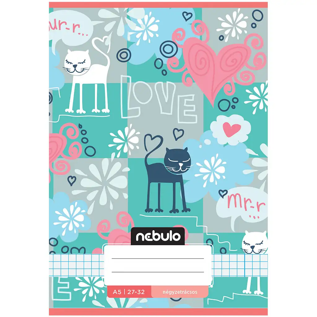 Nebulo Mirr-Murr sešit s kostkovaným vzorem je skutečně hřejivou volbou pro všechny malé školáky, kteří milují kočky! Obálku zdobí hravé, stylizované kočky, které se pokojně usmívají mezi srdíčky a květinami. Jemné barvy – mátová, korálová, světle modrá a růžová – vytvářejí harmonický a sympatický dojem, takže učení bude hned veselejší.
