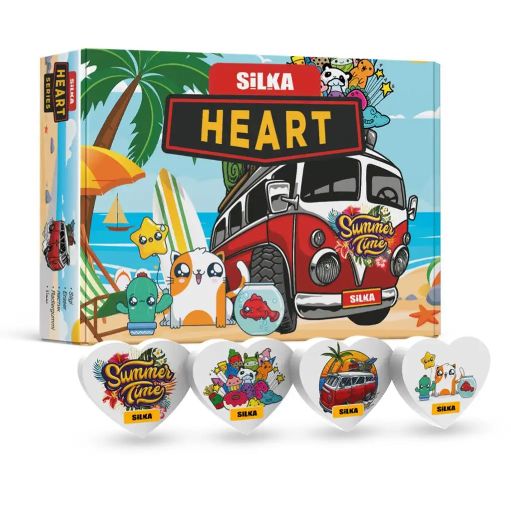 Oživte všední dny těmito srdcovými gumami Silka! Tyto speciální gumy nejsou jen praktické, ale také velmi stylové. Srdcové gumy jsou zdobeny různými vzory, které jistě potěší děti. Ať už jde o školní práci nebo domácí kreslení, tyto gumy můžete mít vždy po ruce. Gumy Silka jsou vyrobeny z vysoce kvalitních materiálů, takže účinně mažou grafit a zároveň šetří papír. Díky ergonomickému designu se snadno drží a díky své malé velikosti je můžete vzít kamkoli s sebou. Jsou také ideální jako dárek, protože každé dítě ocení takový veselý a užitečný nástroj.
