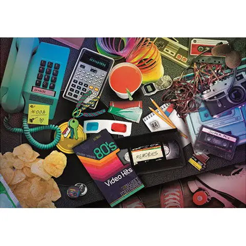 Téměř každý se s radostnou nostalgií ohlíží zpět na osmdesátá léta, na svět VHS videí, kazetových magnetofonů a pevných telefonů. Tehdy ještě neexistovaly mobilní telefony ani internet, ale i tak existovaly puzzle, a skládání obrázku bylo stejně skvělou relaxací jako dnes. Dílky puzzle z kolekce Clementoni High Quality Collection se snadno skládají a dokonale k sobě pasují, zatímco díky kompromisním, vynikajícím tiskovým postupům je hotový obrázek dechberoucí ostrosti a plný živých barev.