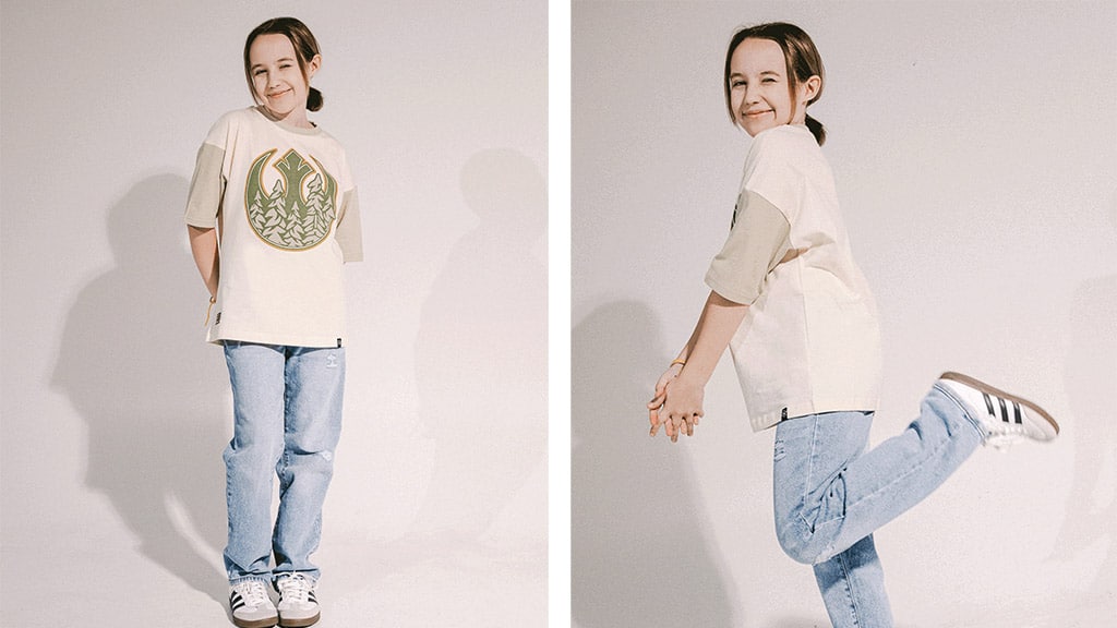 Vivien Lyra Blair se objevila i na focení vlastní kolekce oblečení! To ukazuje, že není jen talentovanou herečkou, ale také kreativní a všestrannou osobností, která se ráda zapojuje i do světa módy. Během focení ukázala svůj jedinečný styl a osobnost, čímž inspirovala své fanoušky a sledující. Zvláštností kolekce je, že obsahuje originálně navržené kousky, které odrážejí Vivienin osobitý vkus a kreativitu.Každý jednotlivý kus v kolekci vykazuje mimořádnou pozornost k detailům, která dalece přesahuje běžné produkty určené dětem! Mikina s kapucí Rebels of Alderaan (65 dolarů) je na přední straně ozdobena velkou nášivkou Aliance rebelů a vyšívaným štítkem s lesem z Alderaanu. Okraj kapuce a vnitřní část jsou lemovány pleteným švem, který připomíná ikonický účes Leiy. Dětská bomber bunda Rebels of Alderaan (100 dolarů) také odkazuje na roli Blair v seriálu Obi-Wan: prošívané rukávy, žebrované lemy a knoflíky dotvářejí vzhled, který připomíná zelenou bundu, již nosila ve filmu. Tyto oděvy nejsou jen stylové, ale poskytují i jedinečný zážitek fanouškům světa Star Wars, protože v každém detailu se odráží příběh a svět postav.