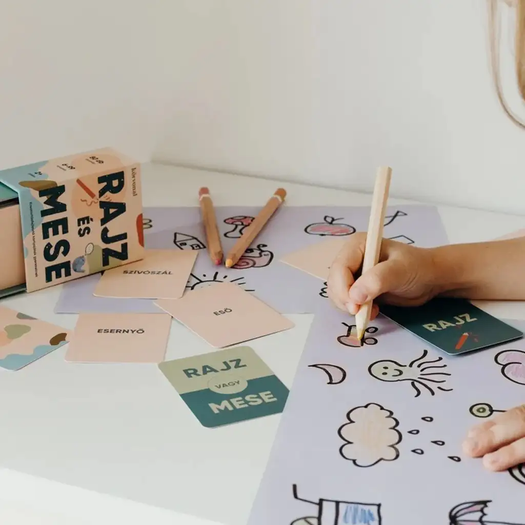 Průběh hry je velmi jednoduchý: děti si vytáhnou kartu, na které je napsáno slovo – například „duha“, „deštník“ nebo „velikonoční zajíček“. Poté se rozhodnou, zda o něm budou kreslit nebo vyprávět. Náhodný výběr karet „Kreslení nebo Příběh“ dodává hře další napětí, protože ne vždy se stane to, co si předem naplánovaly. Díky tomu se kromě kreativity rozvíjí i flexibilita a spontánnost.