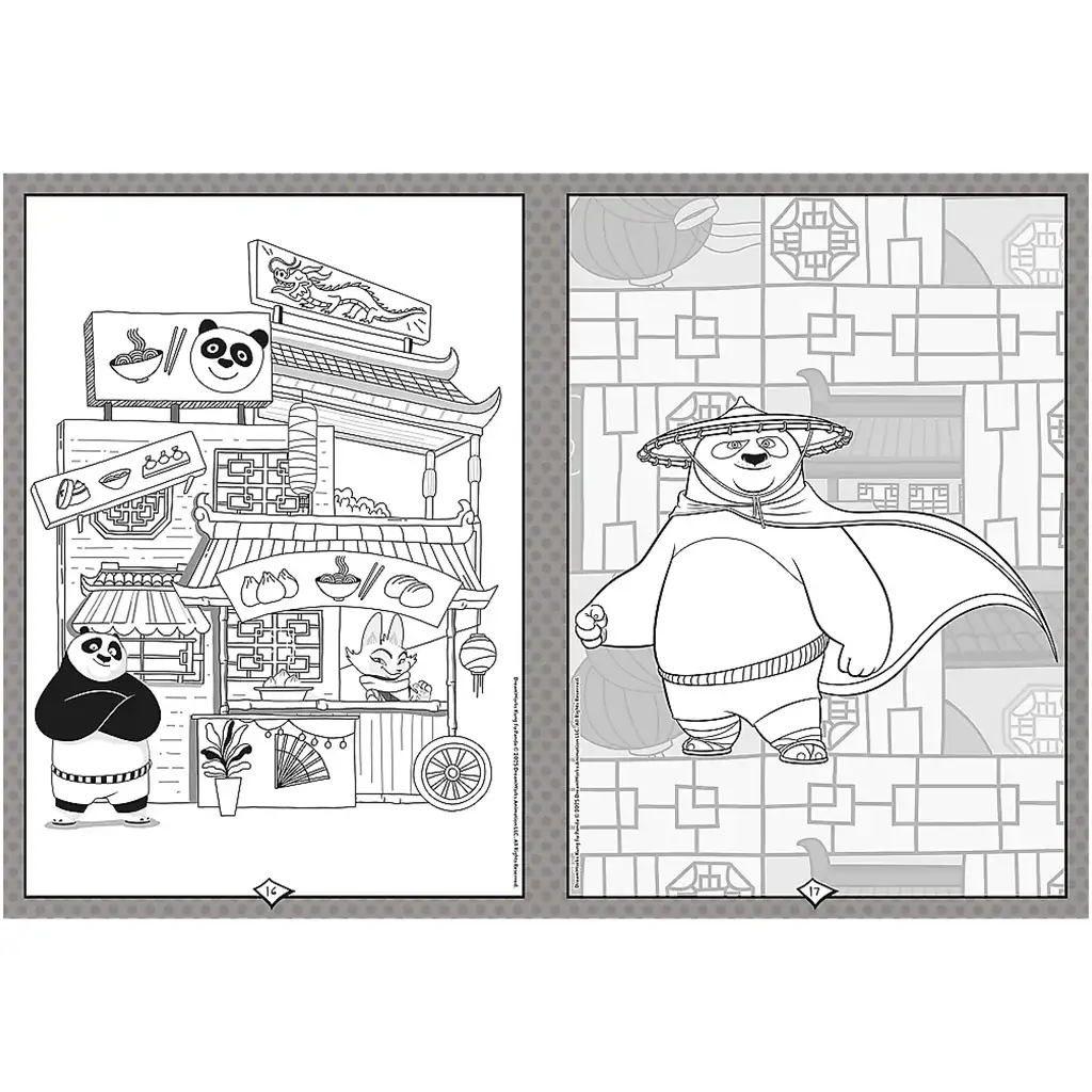Tato omalovánka je ideální volbou pro všechny malé fanoušky kung fu od 4 let, kteří chtějí svým oblíbeným hrdinům dodat vlastní barvy. Detailní obrázky pomáhají rozvíjet soustředění, zručnost i kreativitu, zatímco si děti hravou formou osvojují jména a jedinečné styly postav. Na stránkách najdete Poa v bojových pozicích, Zhena s odhodlaným pohledem nebo tržní scény a zdobená pozadí – každá strana tedy nabízí jiný zážitek.