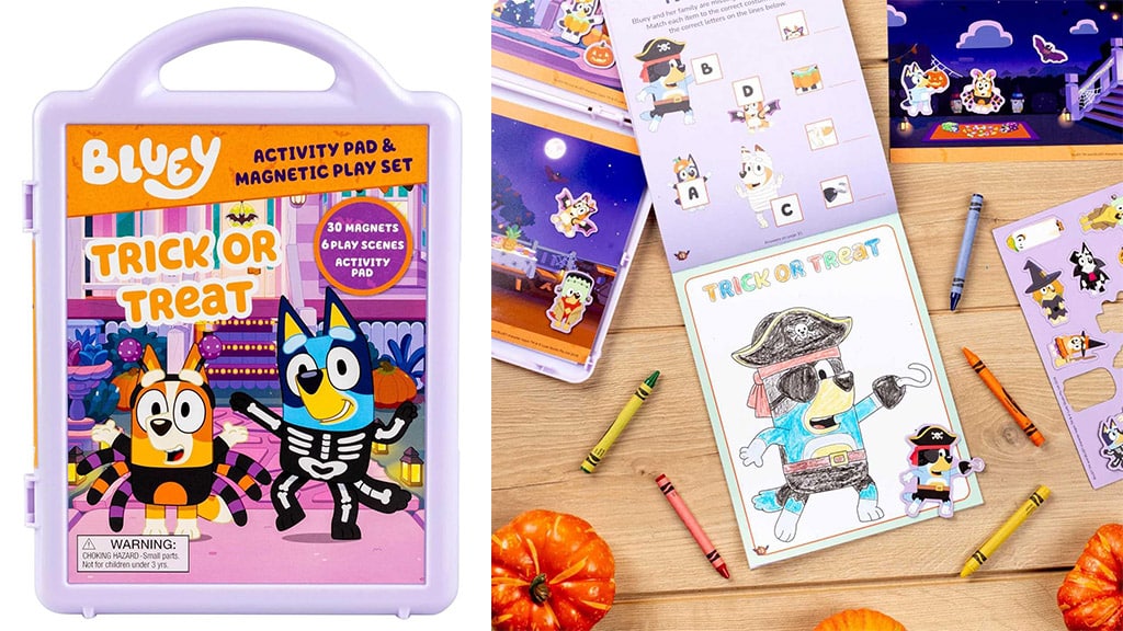 Tato sada obsahuje 30 magnetických prvků, se kterými si lze hrát. Tyto dílky představují různé tvary a barvy, takže rozvíjejí kreativitu a jemnou motoriku dětí. Magnetické prvky lze snadno připevnit a sejmout, takže hra je zároveň zábavná i poučná. Ideální volba pro zábavu doma nebo i na cestách.Malé děti mohou zažít atmosféru Halloweenu s odklápěcí knížkou „Bluey a Bingo kniha děsivých věcí“, ve které sourozenci objevují vzrušující, ale ne příliš strašidelná překvapení kolem domu – například lezoucí brouky v bazénu nebo tajemné tancující kruhy. Tato kniha hravou formou pomáhá dětem poznat a zpracovat jejich strachy, zatímco se mohou společně smát s rodinou. Pro starší děti jsou k dispozici omalovánky a magnetická zábavná knížka, které nabízejí tucet interaktivních hádanek, bludišť a svátečních her, takže si každý najde tu nejzajímavější aktivitu pro strašidelnou sezónu.