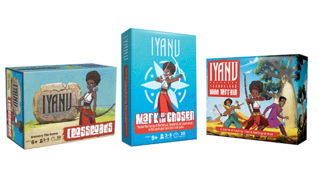 Zažijte kouzlo Yorubalandu s těmito třemi společenskými hrami! Menší fanoušci si mohou otestovat svou paměť ve hře Iyanu: Crossroads , využít své božské síly v dynamické karetní hře Mark of the Chosen , nebo pozvat celou rodinu na napínavou tygří honičku ve strategické, budovatelské hře Yorubaland: Wild Terrain .
