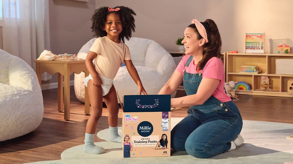 Ms. Rachel videa pomohla rodinám po celém světě překonat výzvy spojené s nácvikem čistoty. Nyní oblíbená učitelka fanoušků spolupracuje se značkou Millie Moon na vytvoření nové kolekce tréninkových plenkových kalhotek, takže Ms. Rachel může být s malými dětmi na každém kroku jejich cesty k samostatnosti na toaletě.