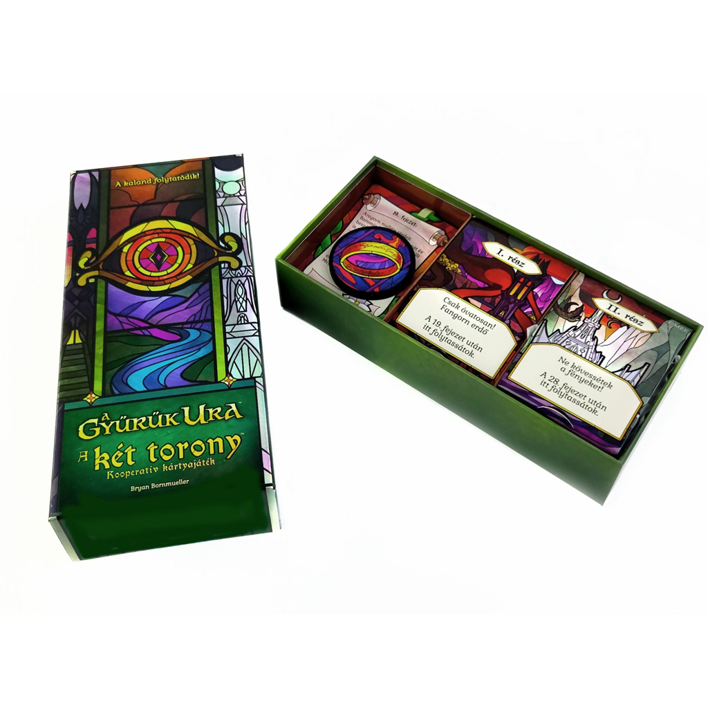 Pán prstenů – Dvě věže: kooperativní karetní hra je ideální volba, pokud chcete se svým dítětem společně zažít opravdu hluboký a podnětný herní zážitek. Hra vás přenese do Středozemě, kde můžete sledovat události druhého dílu kapitolu po kapitole. Cíl je společný: musíte společně plnit mise, přičemž každý hráč se ujme role jedné postavy a má vlastní úkoly.
