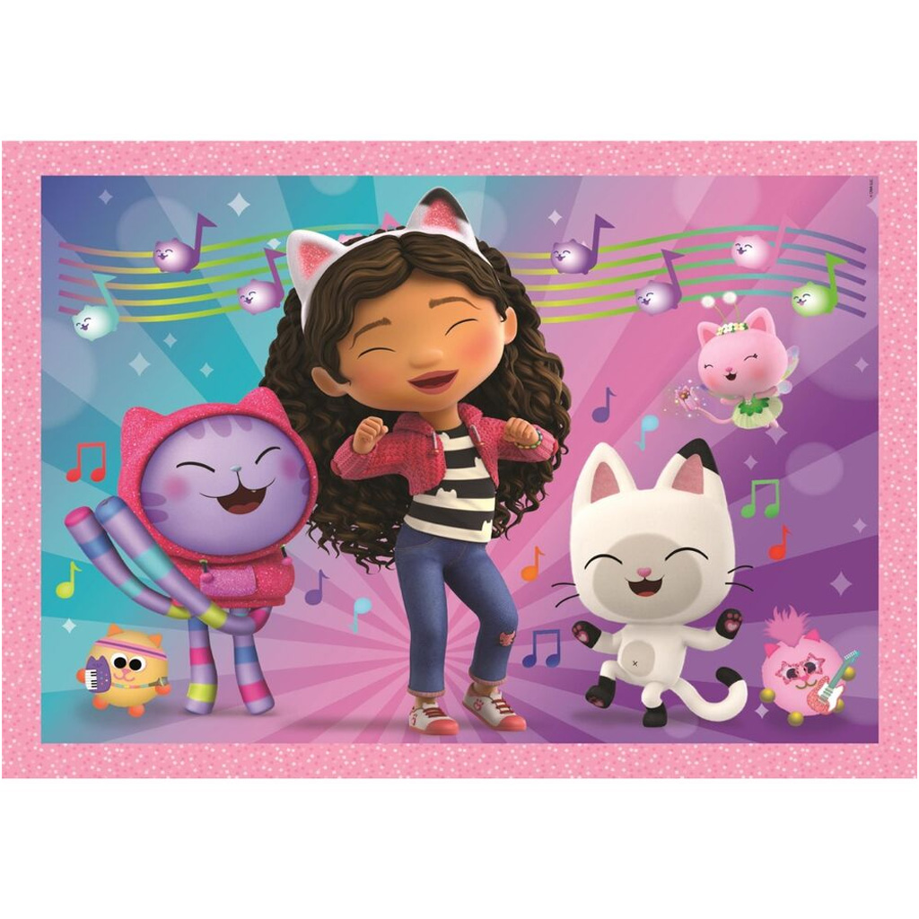 Panenkový domeček Gabi 4 v 1 Supercolor puzzle je ideální volba, pokud hledáte opravdu barevnou, veselou a rozvíjející hračku pro vaše dítě. Balení obsahuje čtyři různé puzzle, které díky různému počtu dílků nabízejí postupnou výzvu, takže se dítě může krok za krokem zlepšovat. Na obrázcích se objevují Gabi a její roztomilí kočičí kamarádi v hudebních, hravých a dobrodružných scénách, které okamžitě upoutají pozornost dětí. Skládání puzzle napomáhá rozvoji jemné motoriky, zlepšuje soustředění a posiluje logické myšlení. Živé barvy Supercolor dělají hru ještě zábavnější, takže si ji vaše dítě bude rádo brát znovu a znovu.