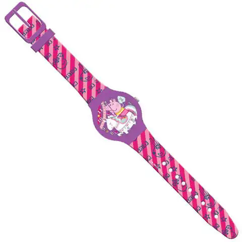 Peppa Pig se tentokrát objevuje na analogových hodinkách ve svých charakteristických barvách a může se okamžitě stát oblíbeným doplňkem vašeho dítěte, protože svého oblíbeného hrdinu z pohádek může nosit na zápěstí kdykoliv během dne a zároveň se naučit číst analogové hodiny a orientovat se ve čase. Díky průhlednému plastovému obalu je také skvělou volbou jako dárek k narozeninám, jmeninám nebo jakékoliv jiné příležitosti. Hodinky obsahují baterii potřebnou pro jejich provoz.