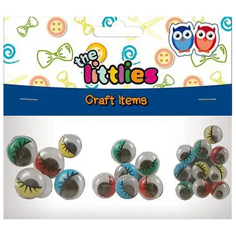 Barevné očička dovedou postavičku vytvořenou během kreativní hry k dokonalosti – děti si je mohou vybrat z více barev! Sada obsahuje oči ve třech různých velikostech, takže malí i velcí mohou použít varianty o průměru 12, 16 nebo dokonce 20 milimetrů. Očička lze jednoduše nalepit, takže hotová postava s nimi může mít úplný obličej. Jsou použitelné jak na jednoduché kresby, tak i na trojrozměrné figurky.