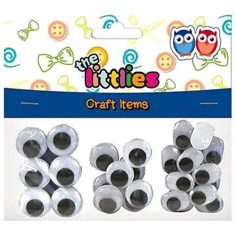 Velké oči mohou být nalepeny na figurky nebo dokonce na panenky, jak malými, tak velkými, ale také mohou dekorovat postavy z modelovací hmoty těmito nápaditými očima. Mezi třemi různými očima najdete dvě různé formy o velikosti 20 mm a také kulaté oči o velikosti 22 mm. Jejich umístění je jednoduché, takže kreativní tvorba bude pro nejmenší dětskou hru.