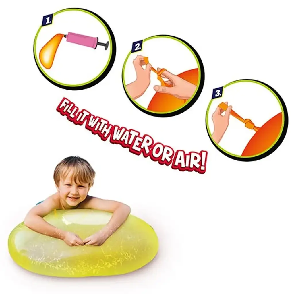 Pokud ho naplníte vodou, stane se z něj obrovský, měkký a pružný míč, na kterém můžete ležet, skákat nebo se kutálet. Nafouknutý vzduchem se pak stává lehkým, obřím míčem, který můžete házet, kutálet a odrážet. Díky pružnému a odolnému materiálu si hru můžete užívat dlouhou dobu.