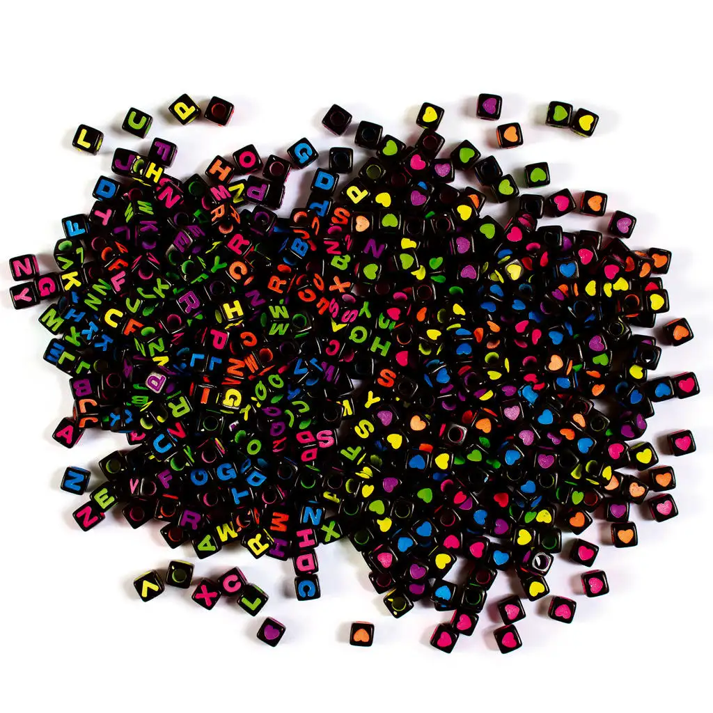 Tyto černé korálky s písmeny jsou skutečným kreativním pokladem pro korálkaře a kreativní tvůrce. Balení obsahuje černé korálky na čtverečkové bázi, které tvoří zajímavý kontrast s živými neonovými barvami nebo srdíčkovými vzory. Přibližně 600 korálků nabízí možnost osobního kreativního vyjádření. Tyto korálky mají průměr přibližně 7 mm, což je ideální velikost pro navlékání a design.