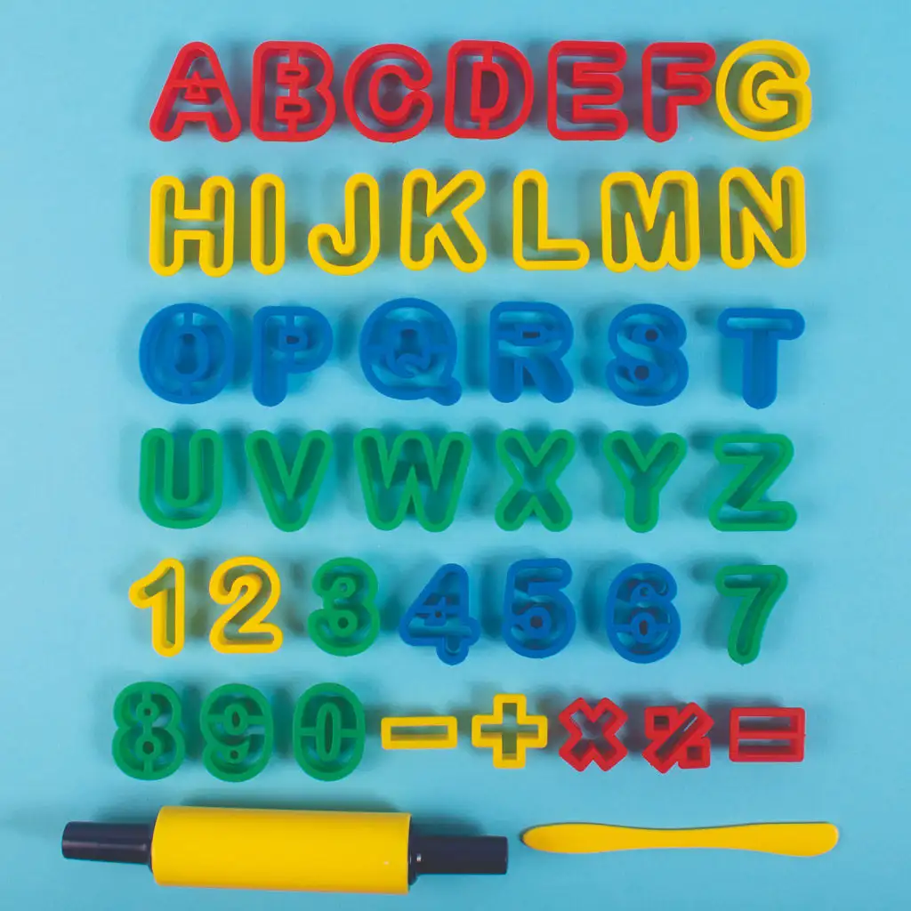 - 26 kusů písmenových forem: Tyto formy umožňují vytváření jedinečných zpráv, jmen nebo slov z plastelíny.