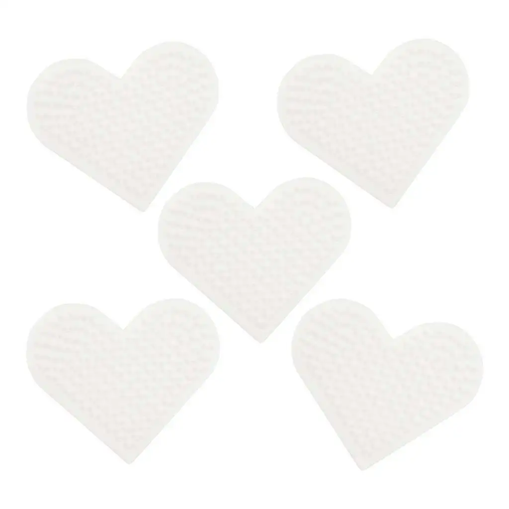 Balíček obsahuje pět bílých základních desek ve tvaru srdce, každá pečlivě navržena tak, aby korálky snadno zapadly, což usnadňuje přesné a rychlé umístění vzorů. Použití základních desek je jednoduché a bezpečné, ideální volba i pro děti, které si chtějí rozvíjet jemnou motoriku a kreativitu.
