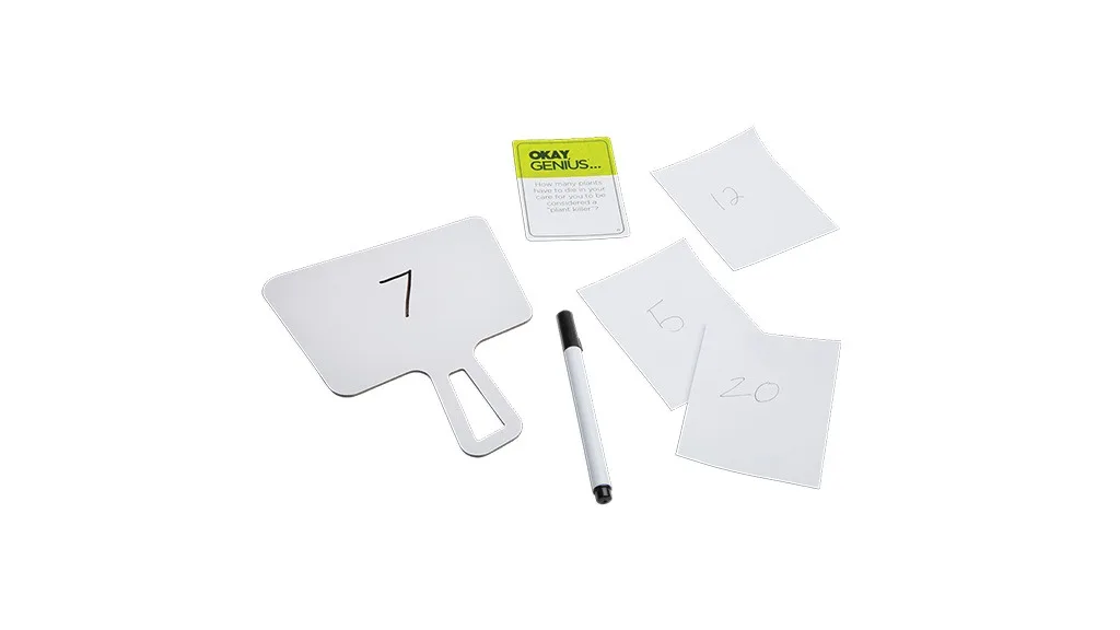 Na skutečné otázky života, jako je například "Kolik stromů tvoří malý les?", najdete odpovědi v této hilaris ledoborec party hře. Ve hře Okay, Genius... má každý šanci stát se géniem!