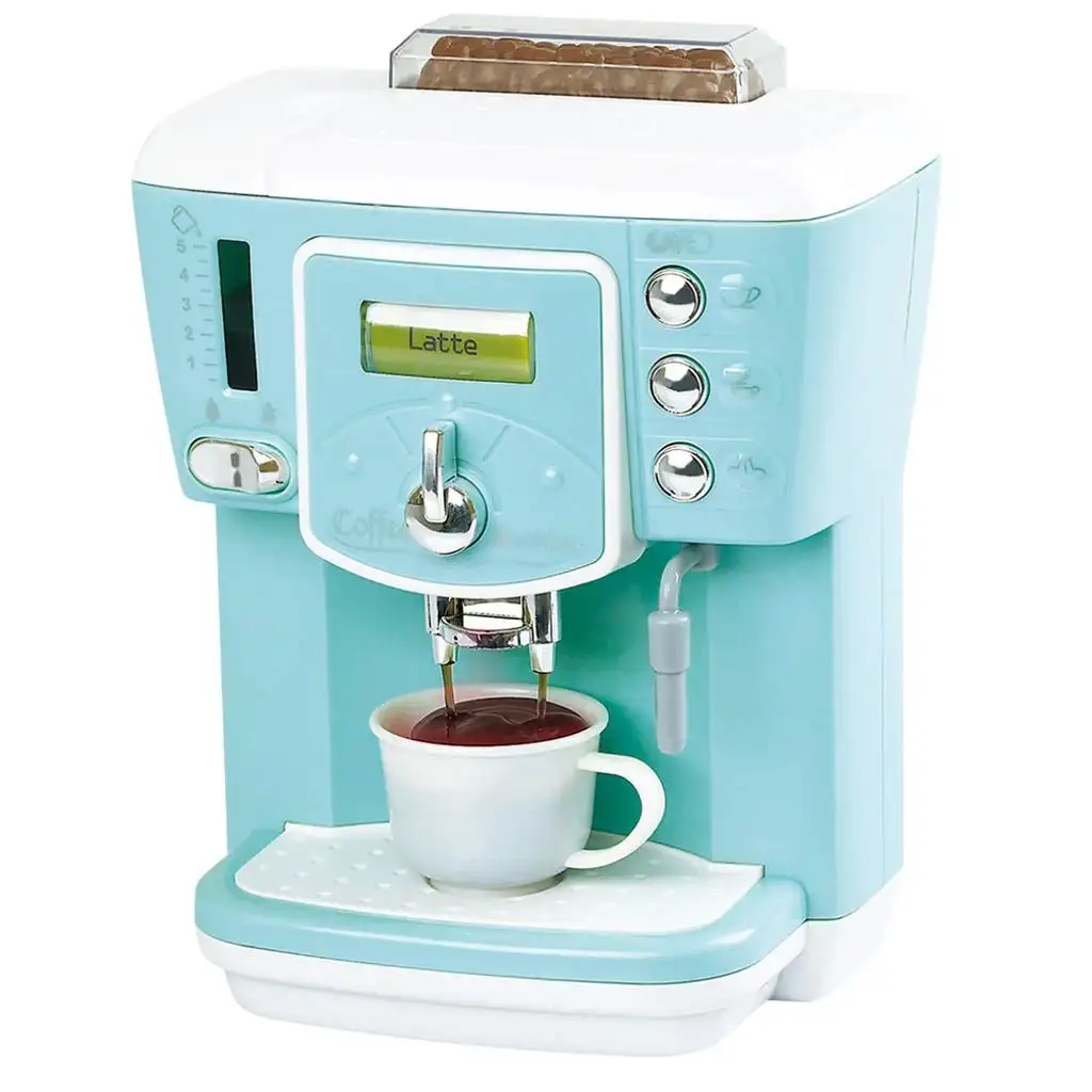 Překvapte své dítě tímto úžasným modrým hračkovým kávovarem, s jehož pomocí může připravit lahodnou kávu pro své hračkové panenky a malé hosty, přesně tak, jak si to představoval, když je pohostil dortem. Zařízení je veselé, září v jasných barvách. Nejprve naplňte nádrž vodou, poté aktivujte tlačítko, které začne vodu do hrníčku napouštět. Na vrchu kávovaru jsou plastové kávové zrna, takže děti mají pocit, že připravují skutečnou kávu. Na Deluxe kávovaru lze otáčením tlačítka nastavit, jaký typ kávy chtějí připravit: ať už je to mléčný latte, cappuccino nebo dokonce macchiato.