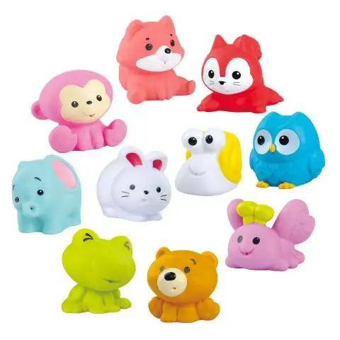 Od nyní bude koupání pro děti mnohem zábavnější s tímto fantastickým měkkým stříkajícím sadou 10 lesních zvířátek. Balení obsahuje celkem 10 veselých zvířátek, z nichž každé je schopné stříkat vodu, pokud ji nasají, když je ponoříte do vany. V balení najdete veverku, medvěda, lišku, králíka, motýla, opici, slona, sovu, žábu a šneka. Zvířátka přicházejí v praktickém, průhledném, válcovém úložišti.
