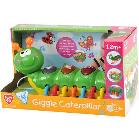 Nejlepším přítelem malých bude tažený, hudební dětský housenka, který v okamžiku vykouzlí úsměv na malé tváře. Tato hračka vytvořená v jasně zelené barvě s veselým výrazem tváře baví děti světly a různými melodiemi, k čemuž stačí, aby malí stiskli tlačítka na zádech housenky. Během přehrávání melodií veselé zvíře začne chodit a povzbuzuje děti k pohybu.