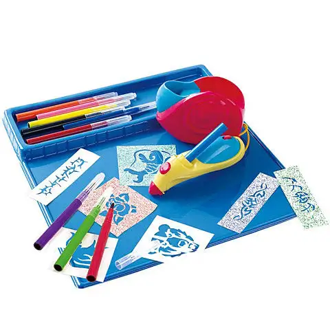 Tetovací studio poskytuje skvělou zábavu pro kreativní děti, které vždy milovaly tetovací nálepky. Kompresorová hra funguje s barevnou stříkací tužkou, k vzorům jsou k dispozici skvělé šablony pro děti. Umístěte šablonu na požadované místo na těle dítěte, stiskněte tlačítko na stříkací tužce a uvidíte, jak okamžitě vytvoříte skvělé tetování jedním pohybem. V sadě tetovacího studia najdete různě barevné náplně pro tužky v krabici.