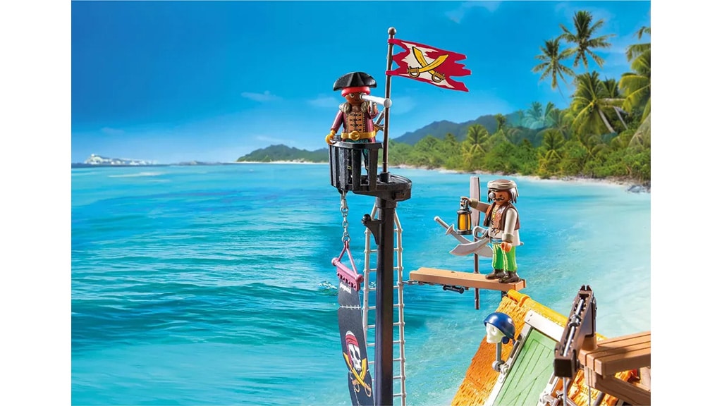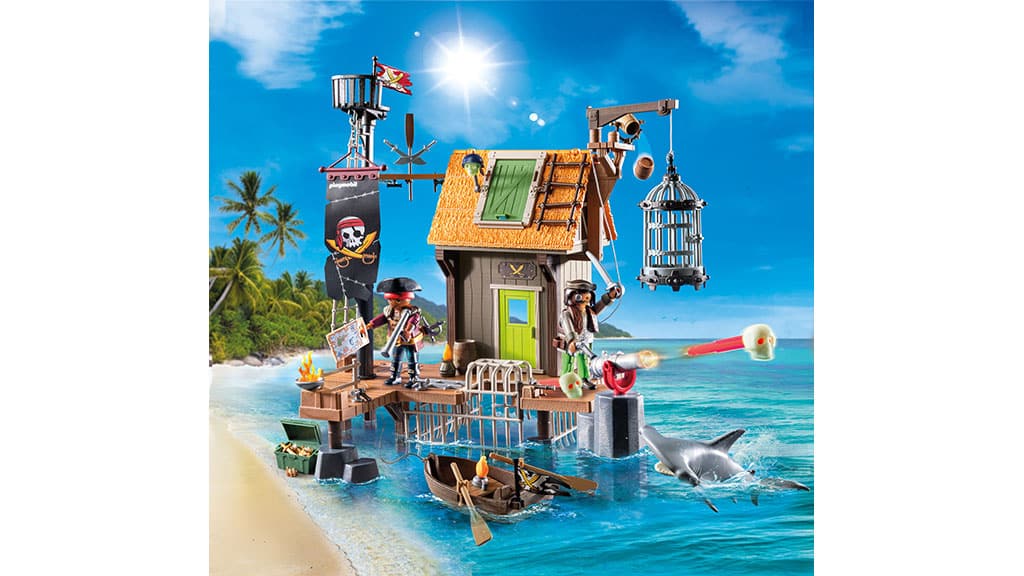 Tato pirátská sada obsahuje přístaviště pro velké lodě, ve kterém se skrývá tajné pirátské vězení. Děti mohou použít padací dveře k uvěznění zajatců, vystřelit lebkový kanón, který střílí lebky svítící ve tmě, a zažít mnoho dalších vzrušujících dobrodružství. Tato sada nabízí skvělou příležitost ke kreativní hře a rozvoji fantazie, zatímco si děti mohou prožít své vlastní pirátské příběhy.