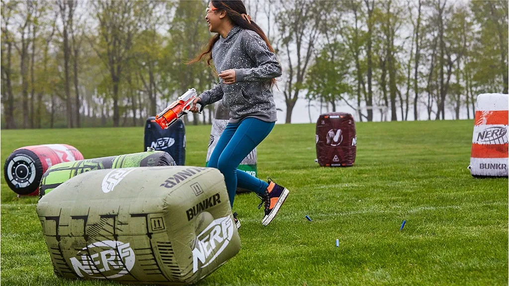 Kolekce NERF BUNKR Battle Zones byla navržena tak, aby zvýšila jakoukoli bitvu s NERF blasterem. Balíček Battle Zones závodů obsahuje čtyři nafukovací barikády, za kterými se děti mohou v bitvě schovat. NERF BUNKR Battle Fort je nafukovací štít, za který se mohou schovat dvě děti. Pokud nafukovací hračky nejsou stylem vašich dětí, mohou se podívat na doplňky BUNKR, ve kterých mohou skladovat všechny své blastery, včetně Combat Carrier Case, Battle On batohu a Stow & Go Clash Cache.