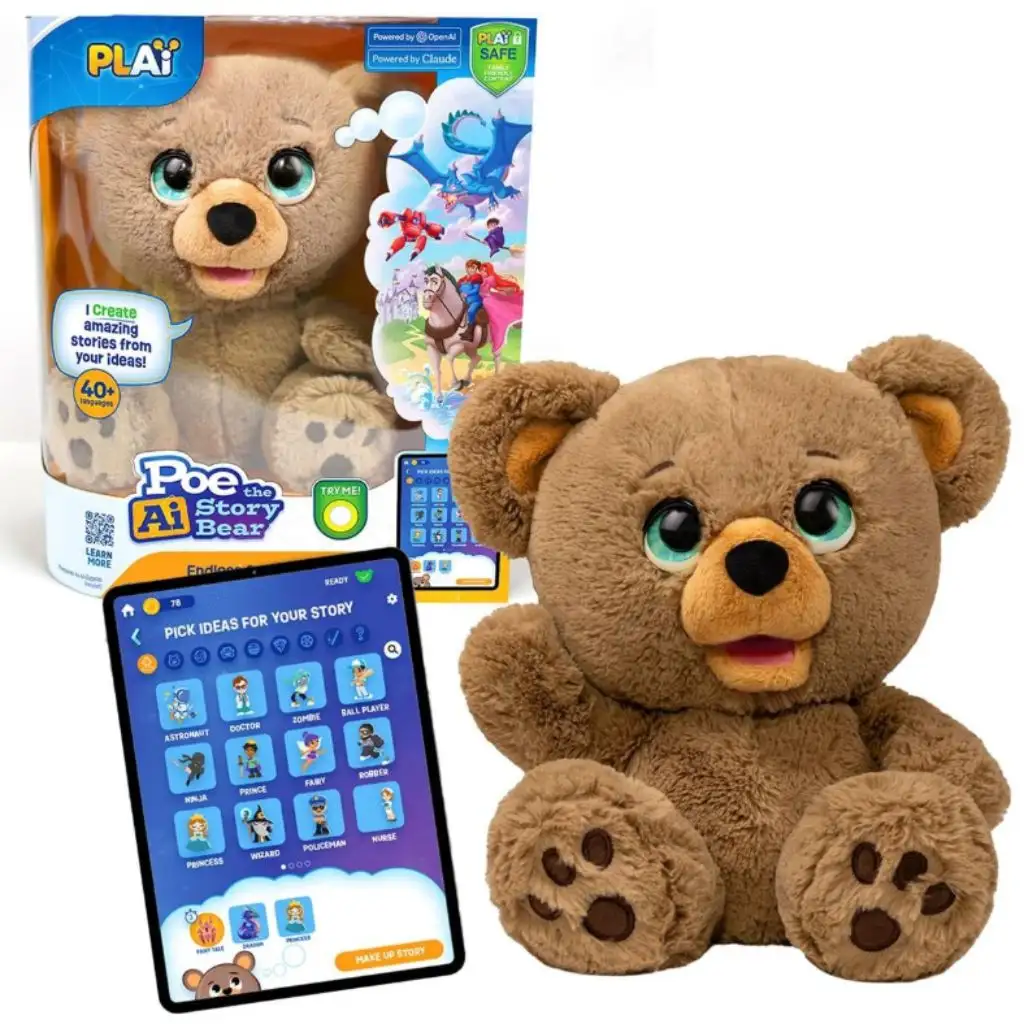 Poe, vyprávěcí AI Medvídek, je speciální plyšák, který posouvá večerní pohádky na zcela novou úroveň! Tento kouzelný medvídek je vybaven umělou inteligencí, takže dokáže vytvářet vlastní, jedinečné příběhy na základě nápadů vašeho dítěte. Ať už jde o královské hrady, draky, superhrdiny nebo jiné kouzelné příběhy, Poe vždy připraví pohádku, která odpovídá představám malých posluchačů. Mluví více než 40 jazyky, včetně češtiny, takže vaše dítě si může vychutnat vyprávění ve svém mateřském jazyce. Poeova AI technologie je bezpečná, přátelská k dětem a poskytuje neustále kontrolovaný obsah, aby každá pohádka byla zábavná a věkově přiměřená. K použití je potřeba chytré zařízení (není součástí balení).