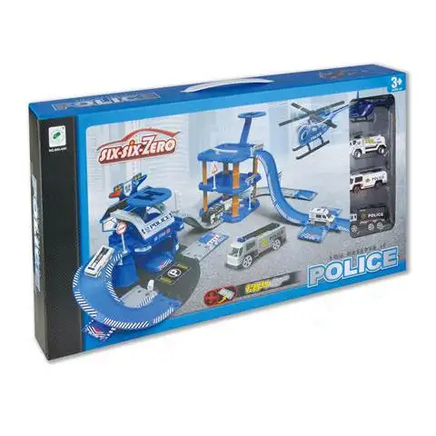 Život policie je pestrý a vzrušující, a nyní do něj může nahlédnout i vaše dítě s touto parkovací garáží, která nabízí spoustu zábavy. V sadě najdete třípatrovou parkovací garáž s přistávací plochou pro helikoptéru na střeše, k níž patří i helikoptéra. Na druhé straně parkovacího domu se nachází policejní stanice, která je velmi detailně zpracovaná, a na její střeše je také přistávací plocha pro helikoptéru. K sadě dále patří 3 policejní auta, se kterými může hra ihned začít.