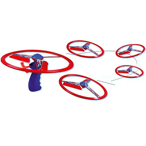 Otočte rotor tažením startovacího lanka, pak ho vypusťte do výšky! Velkou vrtuli mohou děti snadno vypustit do vzduchu, která pak na chvíli stoupá, pak se začne otáčet a klesat. Malý rotující rotor se chová jako bumerang, když ho dovedně hodíte, to znamená, že se vrací na své výchozí místo. Hrajte si s přáteli venku s rotory Power Spin a také soutěžte!