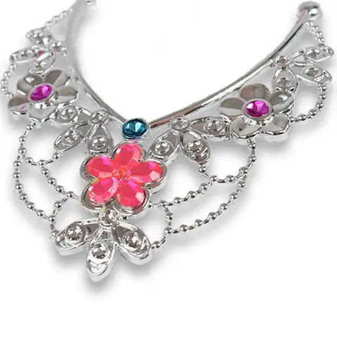 Tato speciální sada poskytuje každým kouskem zářivý diamantový vzhled a třpyt, aby se vaše dítě mohlo cítit jako opravdová princezna. Centrálním prvkem sady je nádherná tiara, ve které září úžasný drahokam na čele vašeho dítěte. Tato tiara nejen zvýrazňuje princeznovský styl a eleganci, ale také svým diamantovým vzhledem okouzlí každého. Náhrdelník je také zdobený drahokamem, což dále zvyšuje lesk princeznovské sady. Náhrdelník zdobený drahokamem poskytuje jedinečný vzhled a zvýrazňuje kouzlo krku vašeho dítěte. Kouzelná hůlka je také zdobená drahokamem, což vytváří opravdu magickou atmosféru. S touto třpytivou kouzelnou hůlkou bude vaše dítě schopné splnit všechna svá přání a sny. Dalšími částmi sady jsou elegantní sponka do vlasů, která umožňuje vašemu dítěti proměnit svůj účes v ještě okázalejší a jedinečnější. Tato princeznovská šperková sada nepřináší jen eleganci a třpyt vašemu dítěti, ale také mu dává možnost objevovat divy princeznovského světa s vlastní kreativitou a fantazií. Diamantový vzhled a chromový třpyt pomáhají vašemu dítěti zažít pravý pocit princezny a vytvářet vlastní příběhy.