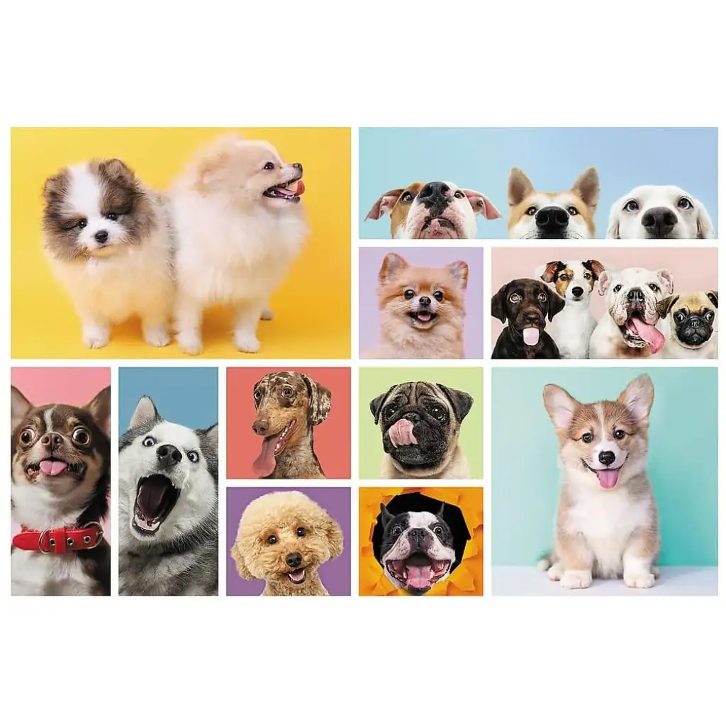 Na této fantasticky roztomilé výloze jsou vidět různí pejsci, kteří pózují ve vtipných pozicích před pastelově barevným pozadím. Od menších psích plemen až po větší psy, mnoho roztomilých psů lze najít na puzzle. Puzzle od Trefl jsou díky svému krásnému, barevnému a ostrému tisku vysoce kvalitní a velmi detailně reprodukují zobrazený obrázek. Jednotlivé dílky puzzle přesně a precizně zapadají do sebe a vytvářejí krásný, homogenní povrch obrázků.