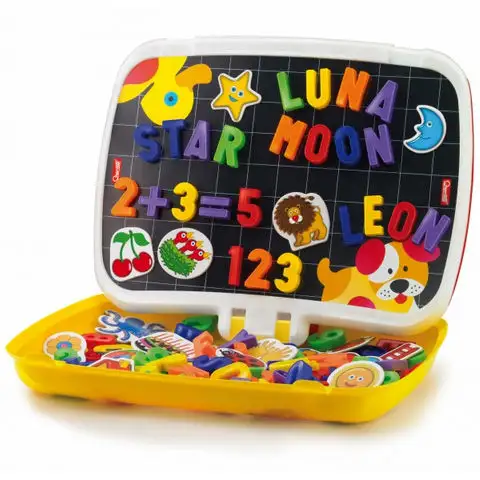 V této velmi praktické tašce s uchem najdeš dvě nesmírně vzrušující hry. Pokud chceš, můžeš si klidně užít svou lásku k kreslení, nic tě nezastaví v tom, abys na smazatelnou tabuli vytvořil krásné obrázky. K tomu ti poskytneme tři skvělé fixy. Pokud však máš chuť na trochu jinou hru, nemusíš se obávat, stačí otočit tabuli a okouzlující svět magnetů se před tebou otevře. Barevná písmena, čísla a figurky, které najdeš v tašce, můžeš všechny použít během hry. Příjemnou zábavu.