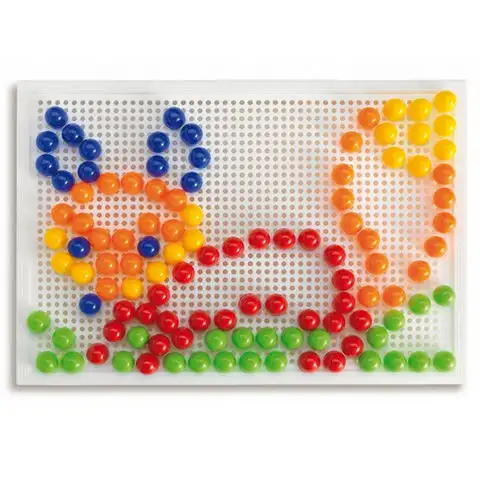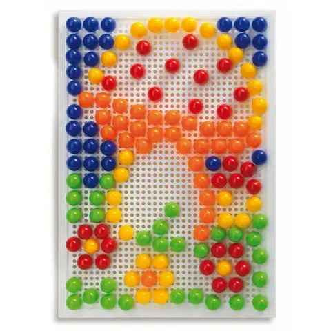Tento balíček obsahující 150 barevných kolíčků zaručeně slibuje bezstarostnou zábavu. Na průhledné plastové návrhářské desce můžeš vytvořit vlastní nápady, ale pokud chceš, můžeš využít i přiložený album plné vzorů. Design kolíčků perfektně pasuje i do menších rukou, takže je snadno nasadíš na své místo. Když dokončíš obrázek, klidně ho ukáž všem, co jsi vytvořil, a dokonce pokud chceš, můžeš své dílo i pověsit na zeď. Rám je totiž vybaven praktickým uchem, díky kterému ho můžeš pověsit, ale také snadno přenášet.