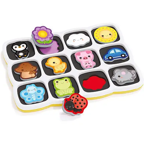 Dvojstranné magnetické puzzle je skvělá volba pro malé děti, protože na jedné straně desky je tucet roztomilých obrázků, které děti musí poznat a umístit na ně odpovídající dílky puzzle. Jednotlivé dílky jsou dostatečně tlusté, měkké a díky magnetům na zadní straně se kouzelně zapadnou na své místo. Na druhé straně desky je barevná krajina, na kterou mohou děti libovolně umisťovat dílky puzzle a vytvářet tak úžasný příběh, jehož scény mohou volně měnit.