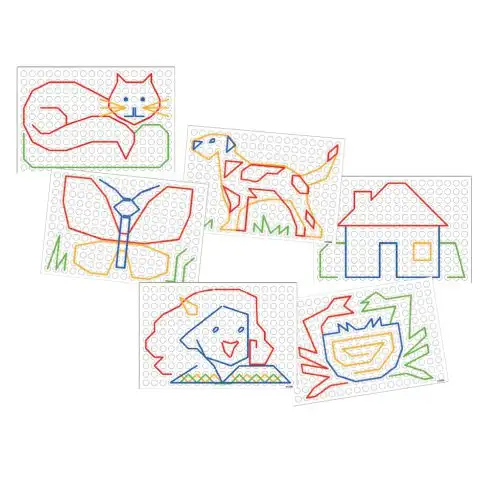 Tato sada obsahuje 12 karet s vzory pro sady Quercetti Filo. Podle vzorů na kartách mohou děti vytvářet jedinečná díla s pomocí barevných nití a desek, které jsou součástí sad. V sadě jsou k dispozici pouze karty s vzory, takže pro jejich použití je samozřejmě potřeba již existující sada Quercetti Filo. V našem internetovém obchodě najdete široký výběr kreativních hraček Quercetti, včetně sad Filo.